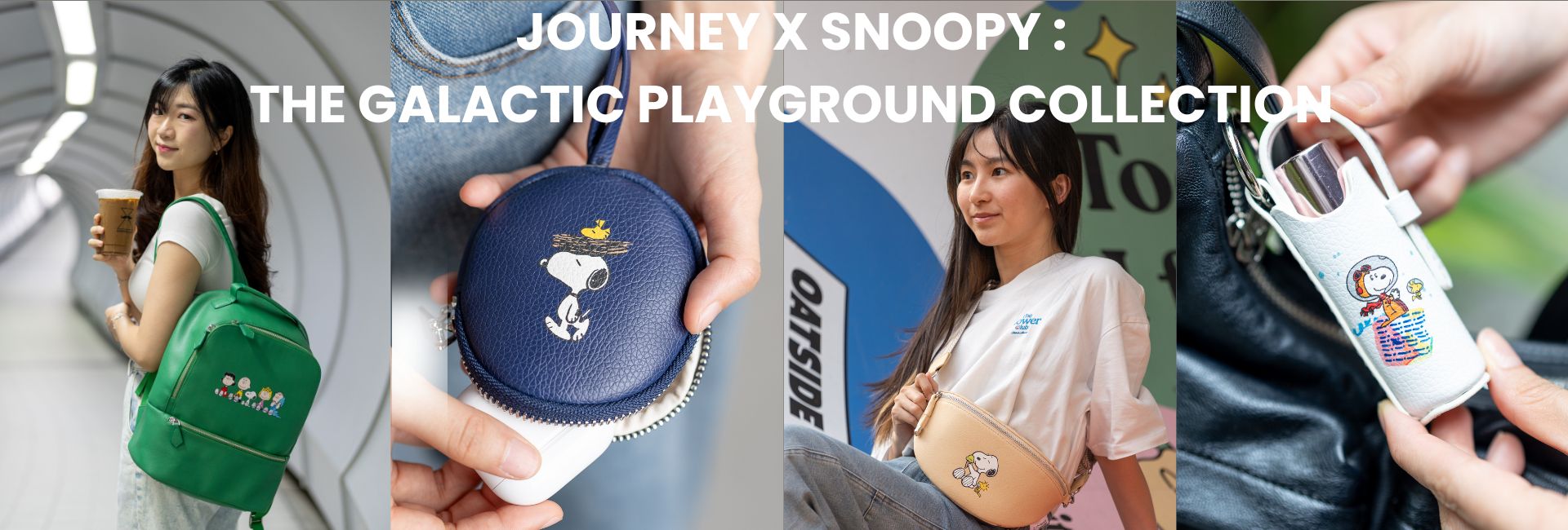 Presenting the first-ever collaboration between JOURNEY and Peanuts— a series of newly designed bags and charms inspired by Galactic Playground, an original artwork created by 27 JOURNEY Special Artists.
